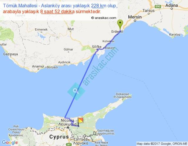 Tömük Mahallesi - Aslanköy arası yaklaşık olarak 90 km/h ile yukarıda belirtilen sürede olup, iki yerin kuş uçuşu uzaklığı (mesafesi) 177'dir. Yolculuk otobüsle 11 saat 31 dakika sürmektedir.