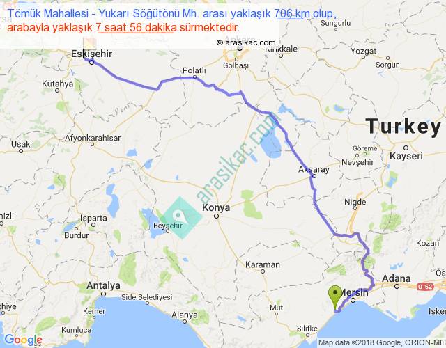 Tömük Mahallesi - Yukarı Söğütönü Mh. arası yaklaşık olarak 90 km/h ile yukarıda belirtilen sürede olup, iki yerin kuş uçuşu uzaklığı (mesafesi) 487'dir. Eğer belirtilen yerler arasında uçak seferi var ise bu süre uçakla 44 dakika'ya kadar düşebilir. Yolculuk otobüsle 10 saat 18 dakika sürmektedir.