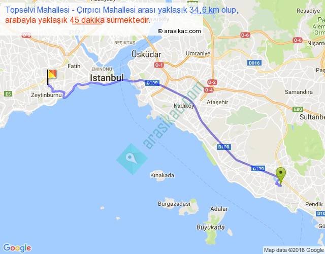 Topselvi Mahallesi - Çırpıcı Mahallesi arası yaklaşık olarak 90 km/h ile yukarıda belirtilen sürede olup, iki yerin kuş uçuşu uzaklığı (mesafesi) 29'dir. Yolculuk otobüsle 58 dakika sürmektedir.