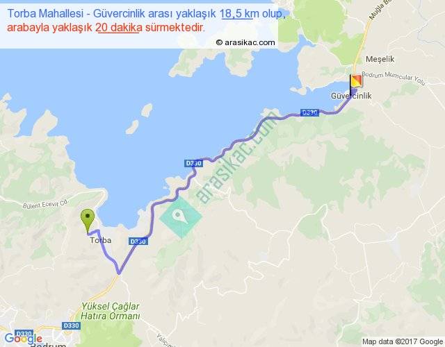 Torba Mahallesi - Güvercinlik arası yaklaşık olarak 90 km/h ile yukarıda belirtilen sürede olup, iki yerin kuş uçuşu uzaklığı (mesafesi) 13'dir. Yolculuk otobüsle 26 dakika sürmektedir.