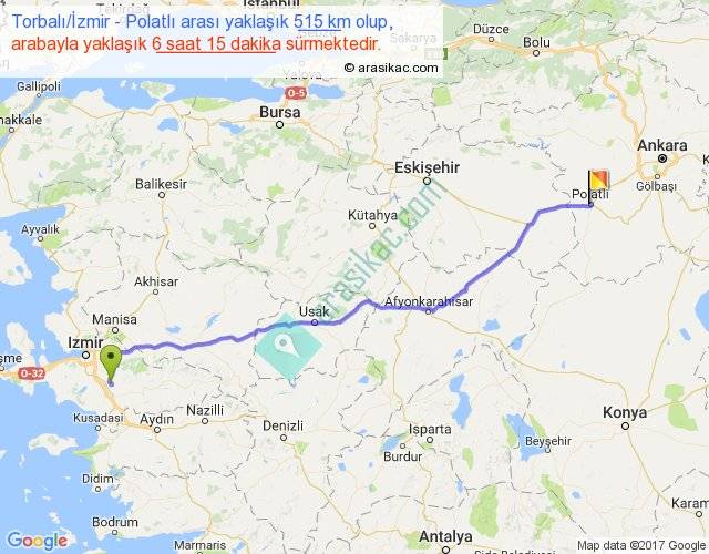 Torbalı İzmir - Polatlı arası yaklaşık olarak 90 km/h ile yukarıda belirtilen sürede olup, iki yerin kuş uçuşu uzaklığı (mesafesi) 437'dir. Eğer belirtilen yerler arasında uçak seferi var ise bu süre uçakla 40 dakika'ya kadar düşebilir. Yolculuk otobüsle 8 saat 7 dakika sürmektedir.