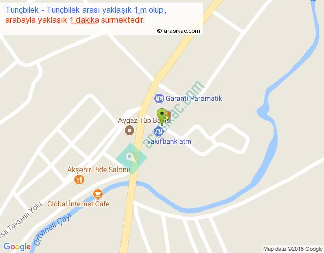 Tunçbilek - Tunçbilek arası yaklaşık olarak 90 km/h ile yukarıda belirtilen sürede olup, iki yerin kuş uçuşu uzaklığı (mesafesi) 0'dir. Yolculuk otobüsle 1 dakika sürmektedir.