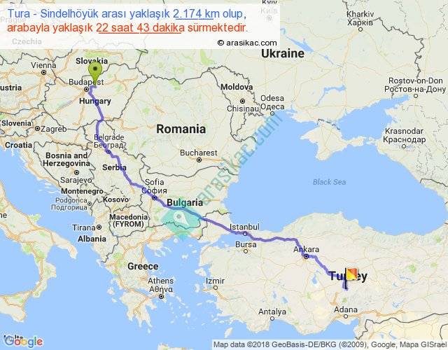 Tura - Sindelhöyük arası yaklaşık olarak 90 km/h ile yukarıda belirtilen sürede olup, iki yerin kuş uçuşu uzaklığı (mesafesi) 1631'dir. Eğer belirtilen yerler arasında uçak seferi var ise bu süre uçakla 2 saat 30 dakika'ya kadar düşebilir. Yolculuk otobüsle 1 gün 5 saat sürmektedir.