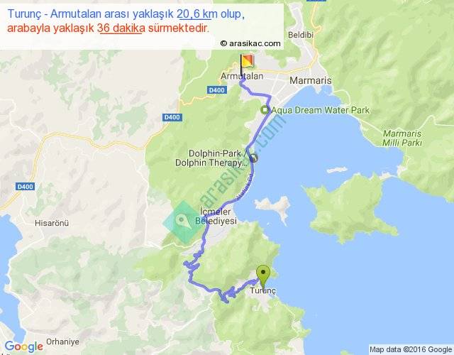 Turunç - Armutalan arası yaklaşık olarak 90 km/h ile yukarıda belirtilen sürede olup, iki yerin kuş uçuşu uzaklığı (mesafesi) 9'dir. Yolculuk otobüsle 46 dakika sürmektedir.