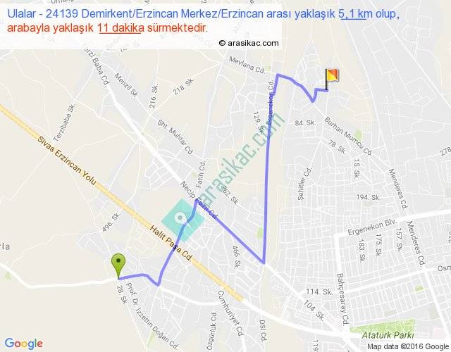 Ulalar - 24139 Demirkent Erzincan Merkez Erzincan arası yaklaşık olarak 90 km/h ile yukarıda belirtilen sürede olup, iki yerin kuş uçuşu uzaklığı (mesafesi) 3'dir. Yolculuk otobüsle 14 dakika sürmektedir.