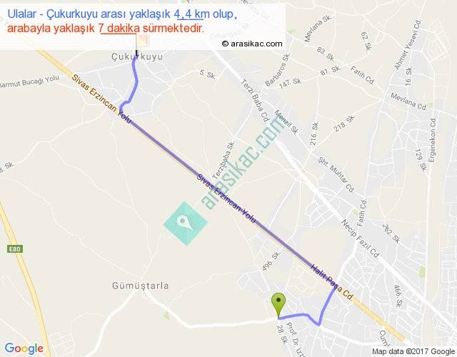 Ulalar - Çukurkuyu arası yaklaşık olarak 90 km/h ile yukarıda belirtilen sürede olup, iki yerin kuş uçuşu uzaklığı (mesafesi) 3'dir. Yolculuk otobüsle 9 dakika sürmektedir.