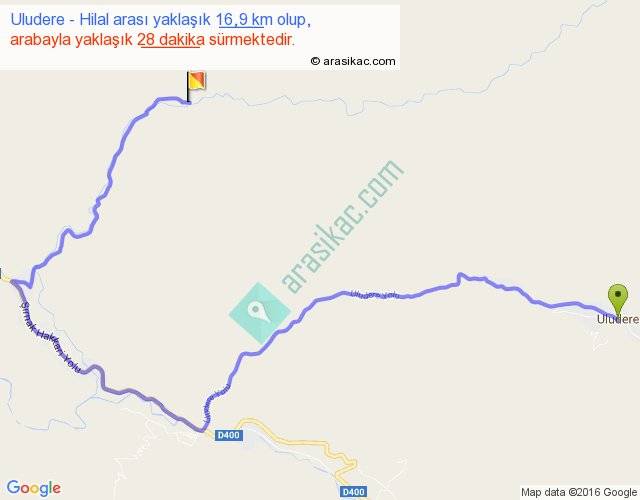 Uludere - Hilal arası yaklaşık olarak 90 km/h ile yukarıda belirtilen sürede olup, iki yerin kuş uçuşu uzaklığı (mesafesi) 7'dir. Yolculuk otobüsle 36 dakika sürmektedir.