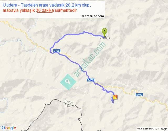 Uludere - Taşdelen arası yaklaşık olarak 90 km/h ile yukarıda belirtilen sürede olup, iki yerin kuş uçuşu uzaklığı (mesafesi) 8'dir. Yolculuk otobüsle 46 dakika sürmektedir.