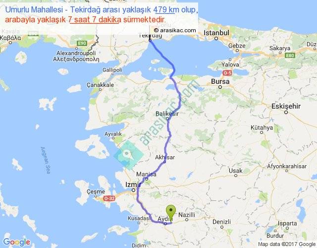 Umurlu Mahallesi - Tekirdağ arası yaklaşık olarak 90 km/h ile yukarıda belirtilen sürede olup, iki yerin kuş uçuşu uzaklığı (mesafesi) 347'dir. Eğer belirtilen yerler arasında uçak seferi var ise bu süre uçakla 32 dakika'ya kadar düşebilir. Yolculuk otobüsle 9 saat 15 dakika sürmektedir.