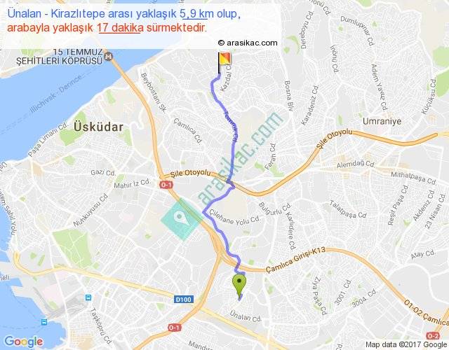 Ünalan - Kirazlıtepe arası yaklaşık olarak 90 km/h ile yukarıda belirtilen sürede olup, iki yerin kuş uçuşu uzaklığı (mesafesi) 5'dir. Yolculuk otobüsle 22 dakika sürmektedir.