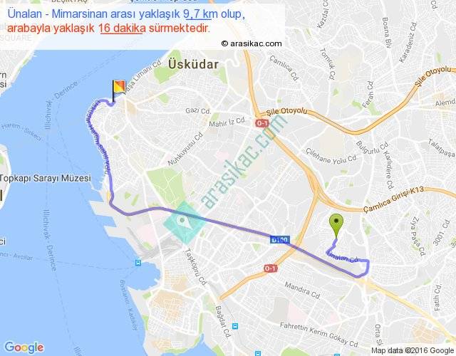 Ünalan - Mimarsinan arası yaklaşık olarak 90 km/h ile yukarıda belirtilen sürede olup, iki yerin kuş uçuşu uzaklığı (mesafesi) 5'dir. Yolculuk otobüsle 20 dakika sürmektedir.