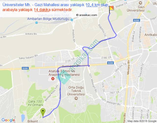 Üniversiteler Mh. - Gazi Mahallesi arası detaylı bilgi