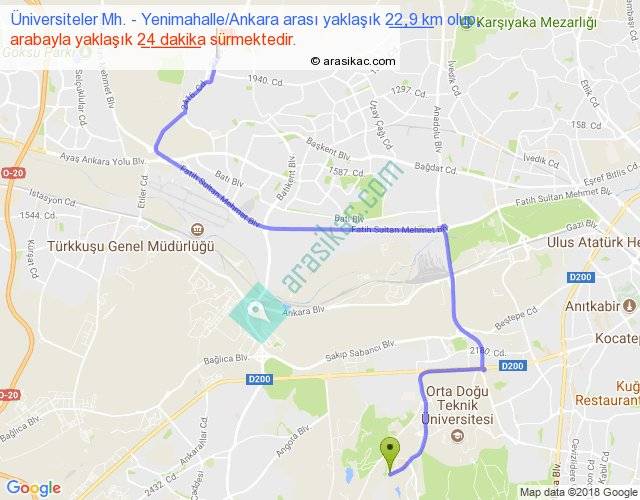 Üniversiteler Mh. - Yenimahalle Ankara arası detaylı bilgi