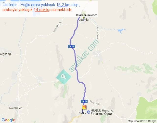 Üstünler - Huğlu arası yaklaşık olarak 90 km/h ile yukarıda belirtilen sürede olup, iki yerin kuş uçuşu uzaklığı (mesafesi) 11'dir. Yolculuk otobüsle 18 dakika sürmektedir.
