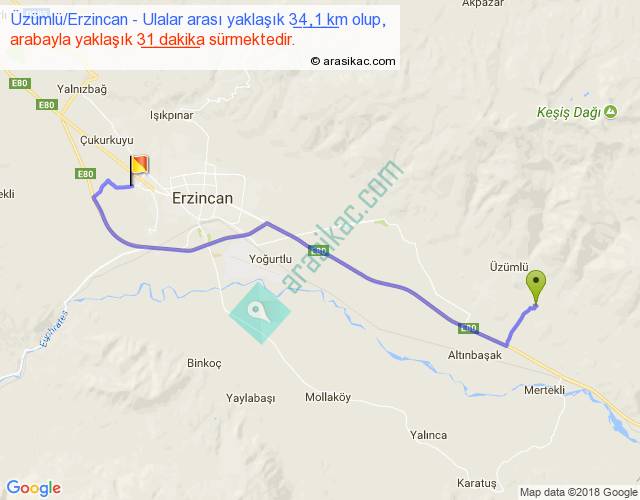 Üzümlü Erzincan - Ulalar arası yaklaşık olarak 90 km/h ile yukarıda belirtilen sürede olup, iki yerin kuş uçuşu uzaklığı (mesafesi) 25'dir. Yolculuk otobüsle 40 dakika sürmektedir.