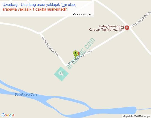 Uzunbağ - Uzunbağ arası yaklaşık olarak 90 km/h ile yukarıda belirtilen sürede olup, iki yerin kuş uçuşu uzaklığı (mesafesi) 0'dir. Yolculuk otobüsle 1 dakika sürmektedir.