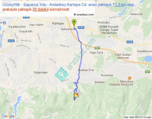 Uzunçiftlik - Sapanca Yolu - Arslanbey Kartepe Cd. arası detaylı bilgi