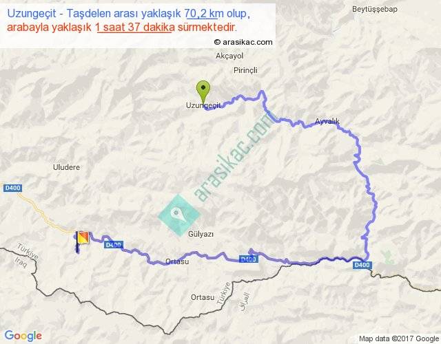 Uzungeçit - Taşdelen arası yaklaşık olarak 90 km/h ile yukarıda belirtilen sürede olup, iki yerin kuş uçuşu uzaklığı (mesafesi) 17'dir. Yolculuk otobüsle 2 saat 6 dakika sürmektedir.