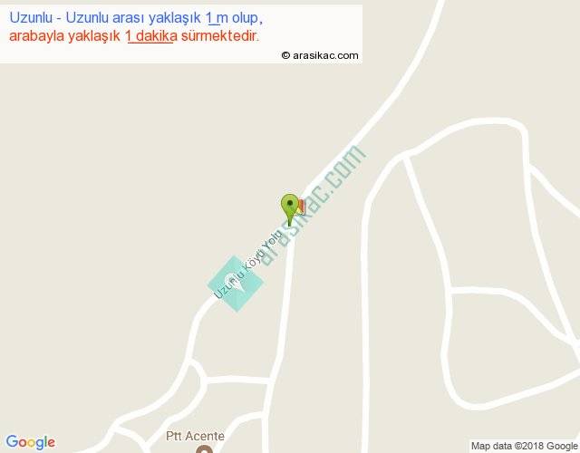 Uzunlu - Uzunlu arası yaklaşık olarak 90 km/h ile yukarıda belirtilen sürede olup, iki yerin kuş uçuşu uzaklığı (mesafesi) 0'dir. Yolculuk otobüsle 1 dakika sürmektedir.