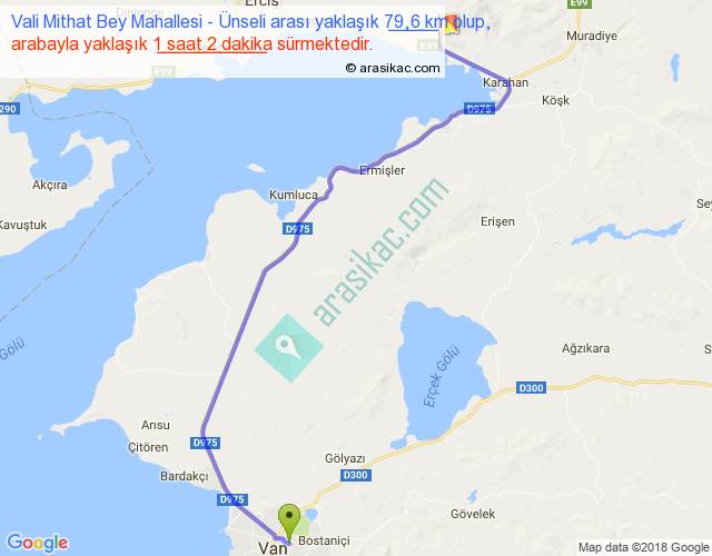Vali Mithat Bey Mahallesi - Ünseli arası yaklaşık olarak 90 km/h ile yukarıda belirtilen sürede olup, iki yerin kuş uçuşu uzaklığı (mesafesi) 55'dir. Yolculuk otobüsle 1 saat 20 dakika sürmektedir.