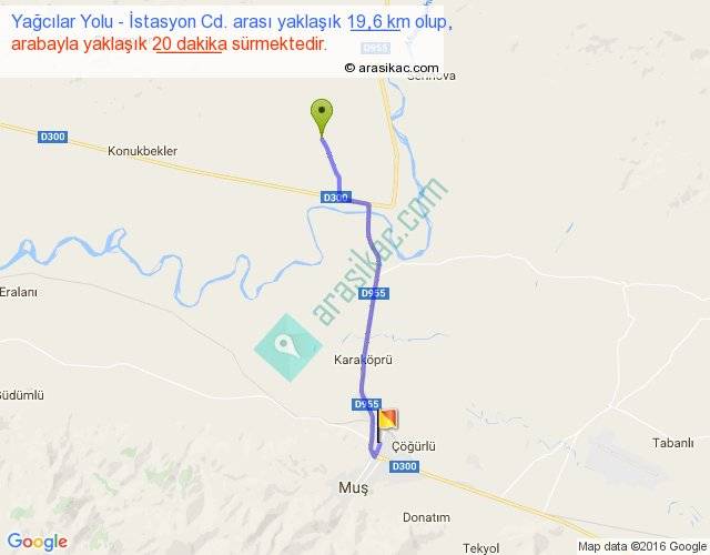 Yağcılar Yolu - İstasyon Cd. arası yaklaşık olarak 90 km/h ile yukarıda belirtilen sürede olup, iki yerin kuş uçuşu uzaklığı (mesafesi) 16'dir. Yolculuk otobüsle 26 dakika sürmektedir.