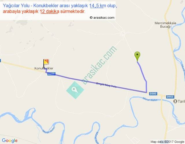 Yağcılar Yolu - Konukbekler arası yaklaşık olarak 90 km/h ile yukarıda belirtilen sürede olup, iki yerin kuş uçuşu uzaklığı (mesafesi) 10'dir. Yolculuk otobüsle 15 dakika sürmektedir.
