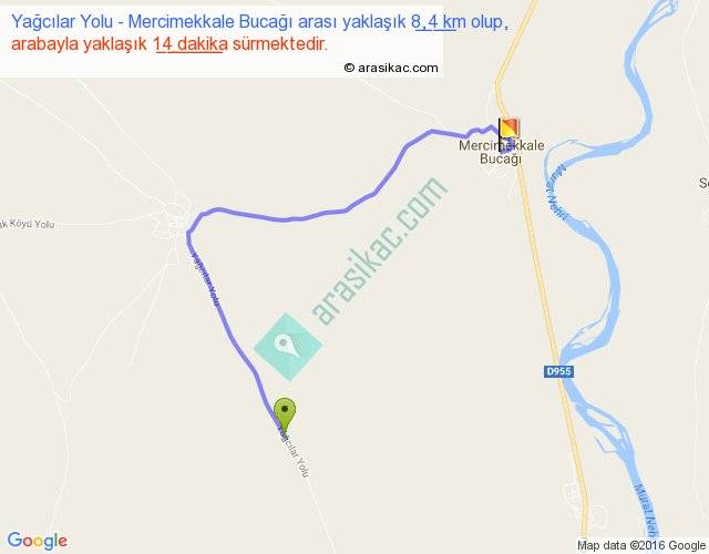 Yağcılar Yolu - Mercimekkale Bucağı arası yaklaşık olarak 90 km/h ile yukarıda belirtilen sürede olup, iki yerin kuş uçuşu uzaklığı (mesafesi) 5'dir. Yolculuk otobüsle 18 dakika sürmektedir.