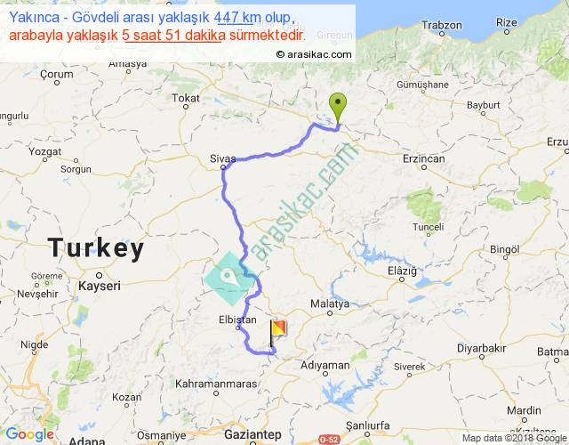 Yakınca - Gövdeli arası yaklaşık olarak 90 km/h ile yukarıda belirtilen sürede olup, iki yerin kuş uçuşu uzaklığı (mesafesi) 246'dir. Yolculuk otobüsle 7 saat 36 dakika sürmektedir.