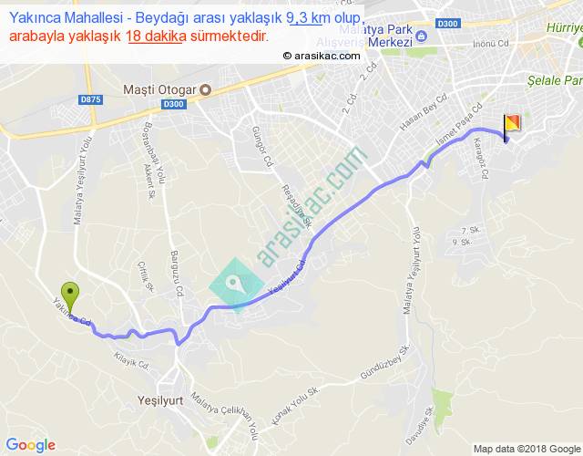 Yakınca Mahallesi - Beydağı arası yaklaşık olarak 90 km/h ile yukarıda belirtilen sürede olup, iki yerin kuş uçuşu uzaklığı (mesafesi) 8'dir. Yolculuk otobüsle 23 dakika sürmektedir.