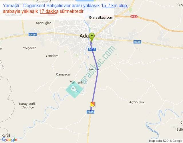 Yamaçlı - Doğankent Bahçelievler arası yaklaşık olarak 90 km/h ile yukarıda belirtilen sürede olup, iki yerin kuş uçuşu uzaklığı (mesafesi) 14'dir. Yolculuk otobüsle 22 dakika sürmektedir.