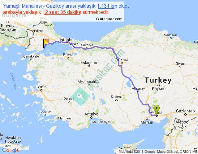 Yamaçlı Mahallesi - Gaziköy arası yaklaşık olarak 90 km/h ile yukarıda belirtilen sürede olup, iki yerin kuş uçuşu uzaklığı (mesafesi) 805'dir. Eğer belirtilen yerler arasında uçak seferi var ise bu süre uçakla 1 saat 14 dakika'ya kadar düşebilir. Yolculuk otobüsle 16 saat 21 dakika sürmektedir.