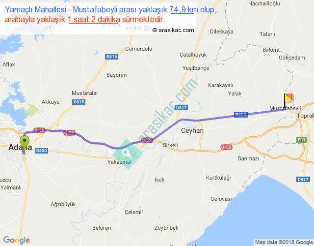 Eğer Yamaçlı Mahallesi Mustafabeyli arası ne kadar yakar (benzin/mazot) diyorsanız, kilometrede 3 ₺ yakan bir aracınız var ise 222, km'de 4 ₺ yakan bir aracınız var ise 296, km'de 5 ₺ yakan bir aracınız var ise 370 ile bu yolculuğu tamamlayabilirsiniz.