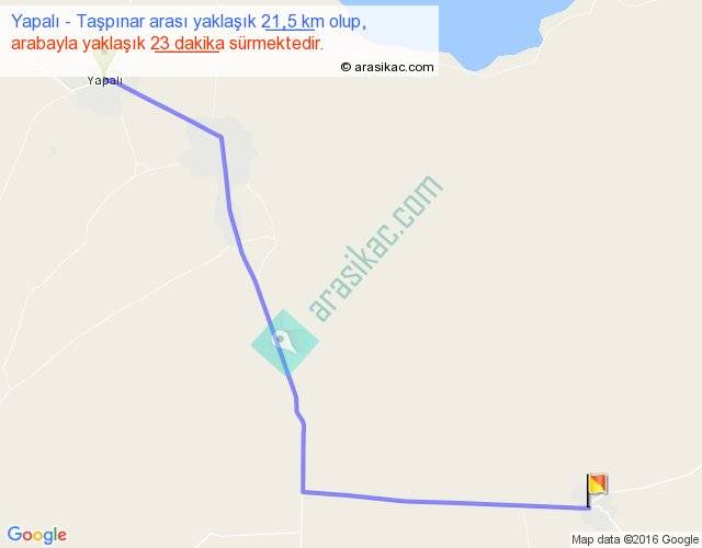 Yapalı - Taşpınar arası yaklaşık olarak 90 km/h ile yukarıda belirtilen sürede olup, iki yerin kuş uçuşu uzaklığı (mesafesi) 18'dir. Yolculuk otobüsle 29 dakika sürmektedir.
