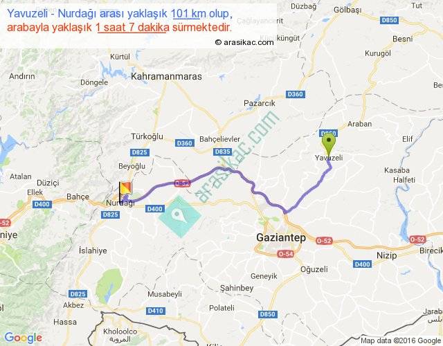 Eğer Yavuzeli Nurdağı arası ne kadar yakar (benzin/mazot) diyorsanız, kilometrede 3 ₺ yakan bir aracınız var ise 303, km'de 4 ₺ yakan bir aracınız var ise 404, km'de 5 ₺ yakan bir aracınız var ise 505 ile bu yolculuğu tamamlayabilirsiniz.