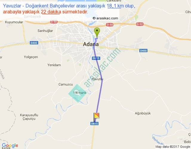 Yavuzlar - Doğankent Bahçelievler arası yaklaşık olarak 90 km/h ile yukarıda belirtilen sürede olup, iki yerin kuş uçuşu uzaklığı (mesafesi) 17'dir. Yolculuk otobüsle 28 dakika sürmektedir.