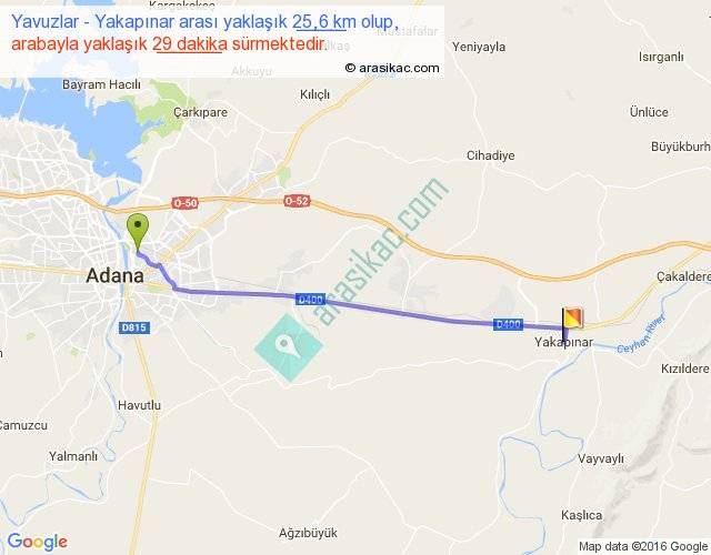 Yavuzlar - Yakapınar arası yaklaşık olarak 90 km/h ile yukarıda belirtilen sürede olup, iki yerin kuş uçuşu uzaklığı (mesafesi) 24'dir. Yolculuk otobüsle 37 dakika sürmektedir.