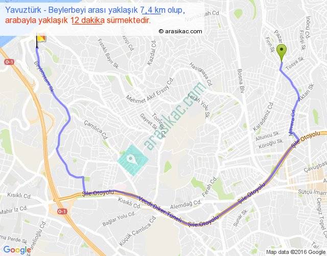 Yavuztürk - Beylerbeyi arası yaklaşık olarak 90 km/h ile yukarıda belirtilen sürede olup, iki yerin kuş uçuşu uzaklığı (mesafesi) 3'dir. Yolculuk otobüsle 15 dakika sürmektedir.