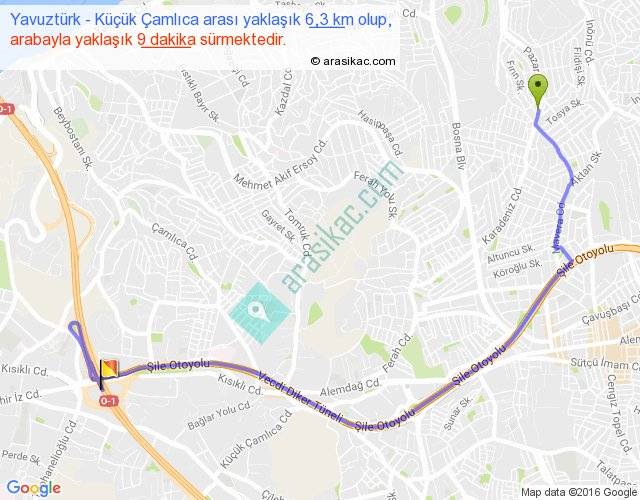 Yavuztürk - Küçük Çamlıca arası yaklaşık olarak 90 km/h ile yukarıda belirtilen sürede olup, iki yerin kuş uçuşu uzaklığı (mesafesi) 4'dir. Yolculuk otobüsle 11 dakika sürmektedir.