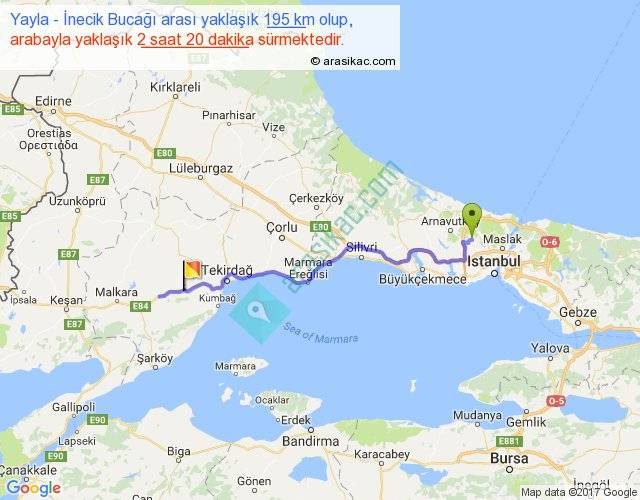 Yayla - İnecik Bucağı arası yaklaşık olarak 90 km/h ile yukarıda belirtilen sürede olup, iki yerin kuş uçuşu uzaklığı (mesafesi) 133'dir. Yolculuk otobüsle 3 saat 2 dakika sürmektedir.