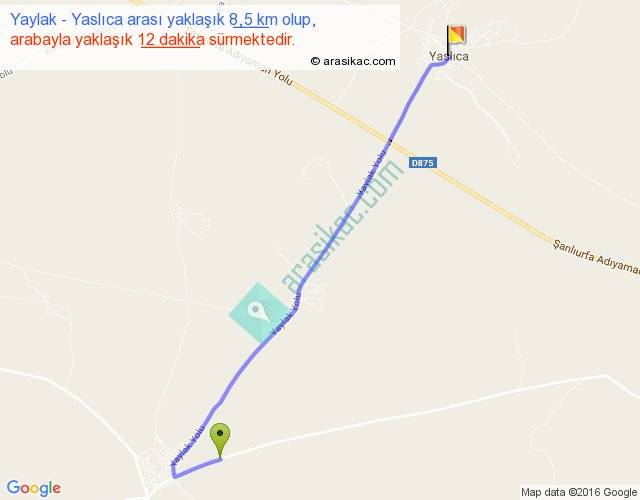 Yaylak - Yaslıca arası yaklaşık olarak 90 km/h ile yukarıda belirtilen sürede olup, iki yerin kuş uçuşu uzaklığı (mesafesi) 7'dir. Yolculuk otobüsle 15 dakika sürmektedir.