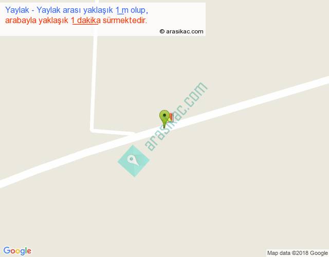 Yaylak - Yaylak arası yaklaşık olarak 90 km/h ile yukarıda belirtilen sürede olup, iki yerin kuş uçuşu uzaklığı (mesafesi) 0'dir. Yolculuk otobüsle 1 dakika sürmektedir.