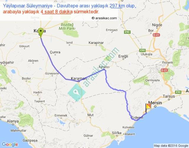 Yaylapınar Süleymaniye - Davultepe arası yaklaşık olarak 90 km/h ile yukarıda belirtilen sürede olup, iki yerin kuş uçuşu uzaklığı (mesafesi) 211'dir. Yolculuk otobüsle 5 saat 22 dakika sürmektedir.