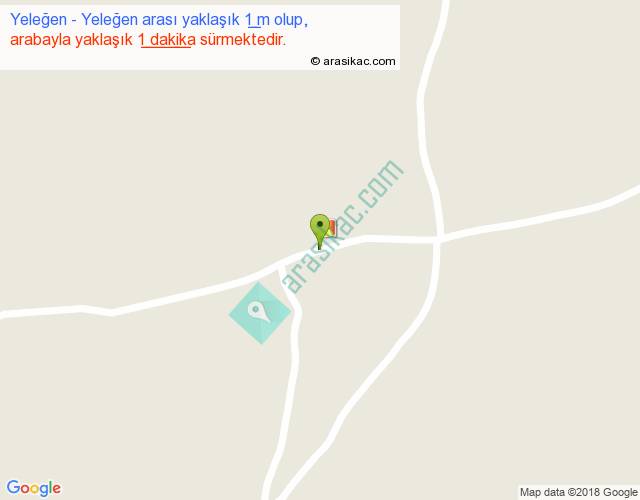 Yeleğen - Yeleğen arası yaklaşık olarak 90 km/h ile yukarıda belirtilen sürede olup, iki yerin kuş uçuşu uzaklığı (mesafesi) 0'dir. Yolculuk otobüsle 1 dakika sürmektedir.