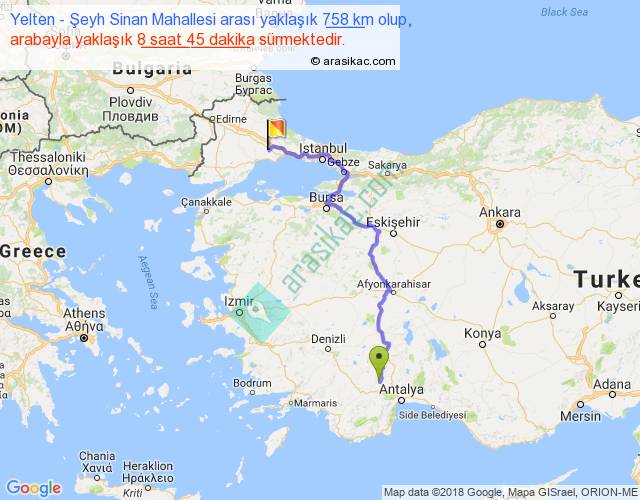 Eğer Yelten Şeyh Sinan Mahallesi arası ne kadar yakar (benzin/mazot) diyorsanız, kilometrede 3 ₺ yakan bir aracınız var ise 2274, km'de 4 ₺ yakan bir aracınız var ise 3032, km'de 5 ₺ yakan bir aracınız var ise 3790 ile bu yolculuğu tamamlayabilirsiniz.