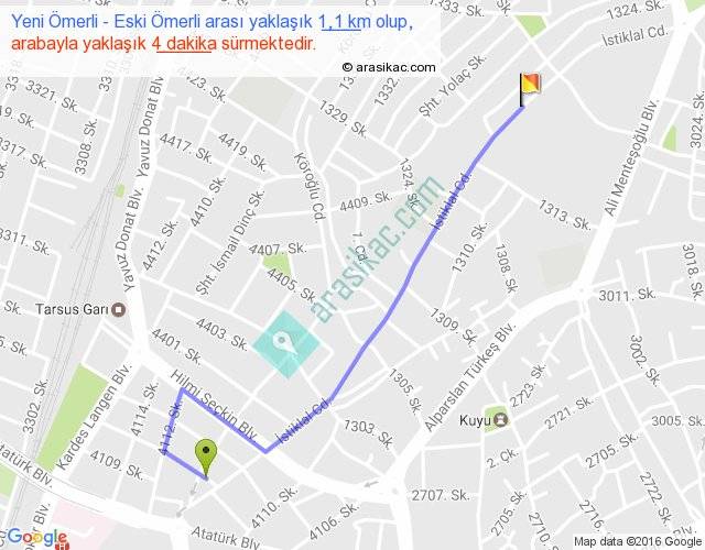 Yeni Ömerli - Eski Ömerli arası yaklaşık olarak 90 km/h ile yukarıda belirtilen sürede olup, iki yerin kuş uçuşu uzaklığı (mesafesi) 1'dir. Yolculuk otobüsle 5 dakika sürmektedir.
