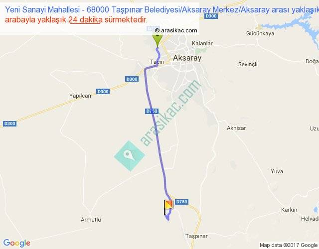 Yeni Sanayi Mahallesi - 68000 Taşpınar Belediyesi Aksaray Merkez Aksaray arası detaylı bilgi