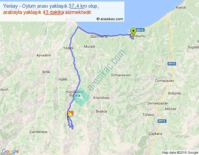 Eğer Yeniay Oylum arası ne kadar yakar (benzin/mazot) diyorsanız, kilometrede 3 ₺ yakan bir aracınız var ise 111, km'de 4 ₺ yakan bir aracınız var ise 148, km'de 5 ₺ yakan bir aracınız var ise 185 ile bu yolculuğu tamamlayabilirsiniz.