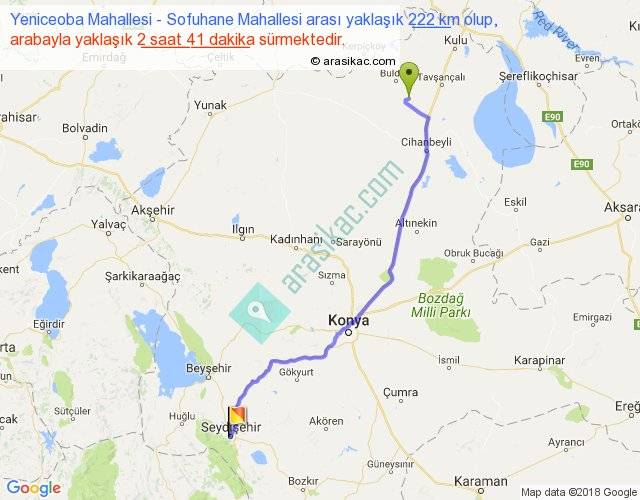 Yeniceoba Mahallesi - Sofuhane Mahallesi arası yaklaşık olarak 90 km/h ile yukarıda belirtilen sürede olup, iki yerin kuş uçuşu uzaklığı (mesafesi) 183'dir. Yolculuk otobüsle 3 saat 29 dakika sürmektedir.