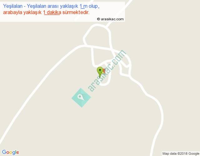 Yeşilalan - Yeşilalan arası yaklaşık olarak 90 km/h ile yukarıda belirtilen sürede olup, iki yerin kuş uçuşu uzaklığı (mesafesi) 0'dir. Yolculuk otobüsle 1 dakika sürmektedir.