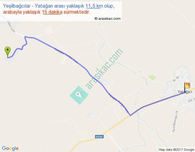 Yeşilbağcılar - Yatağan arası yaklaşık olarak 90 km/h ile yukarıda belirtilen sürede olup, iki yerin kuş uçuşu uzaklığı (mesafesi) 9'dir. Yolculuk otobüsle 19 dakika sürmektedir.